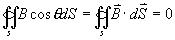由于磁感应线是无始无终的闭合线,所以通过任意闭合曲面S的磁通量恒等于0,即: