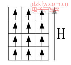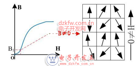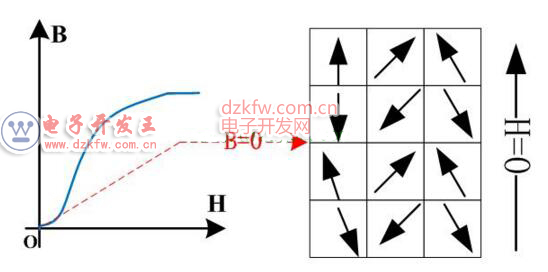 如下图示是未被磁化的铁磁材料,即当外加激励磁场H=0时,铁磁材料的磁畴内部杂乱无章,对外并不表现磁性。