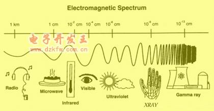 电磁波波谱:电磁波的频率愈高,相应的波长就越短。无线电波的波长最长(频率最低),而
