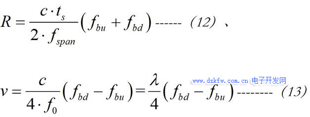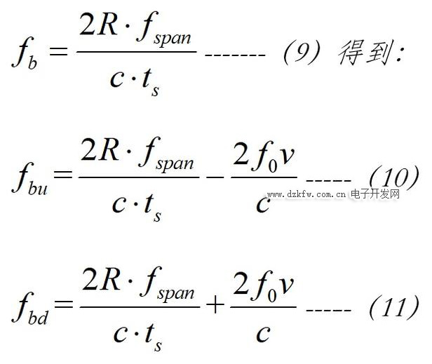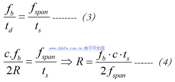公式根据反射波和入射波的频率差fb,可以得到距离信息。根据扫频周期和扫频带宽,能计算出每赫兹频率差、反映的距离信息。从公式可见,扫频带宽越宽,距离分辨率越高;同样扫频带宽下,载波频率越高(ts越小)、距离分辨率越高。在其他参数固定的情况下,距离和差频成函数关系。