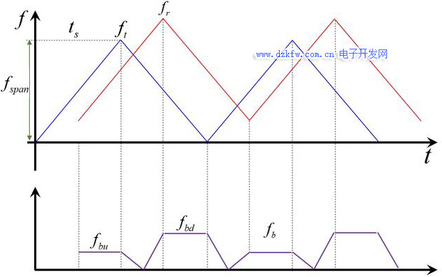 设ts为调频波周期的一半、fspan为调频波扫频带宽,根据如图有如下关系: