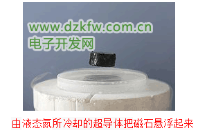 由液态氮所冷却的超导体把磁石悬浮起来