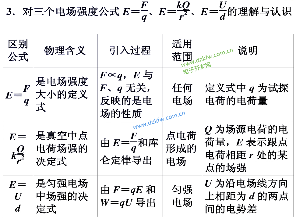3、电场强度是电场的物理量,它表示单位正电荷所受到的电场力大小。电场强度与电荷量和距离的关系遵循库仑定律。