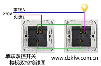 单开双控开关,后面有三个触点,分别是L、L1、L2。把两个L1、L2分别用线连起来,火线接在一个双控开关的L触点上,零线接在另一个双控开关的L触点上。