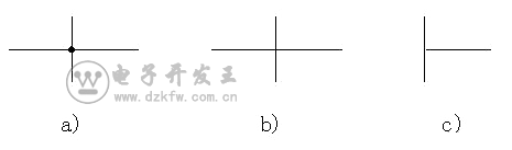a) 有黑圆点十字交叉节点 b)无黑圆点十字交叉节点 c)T字节点