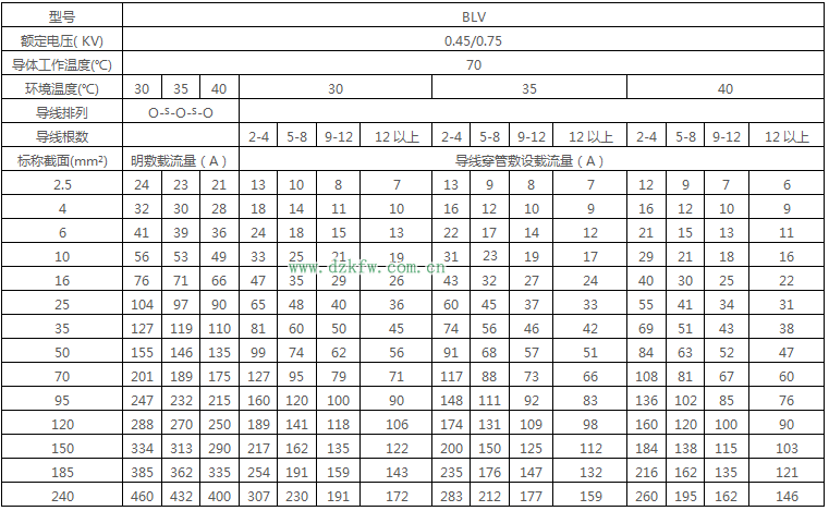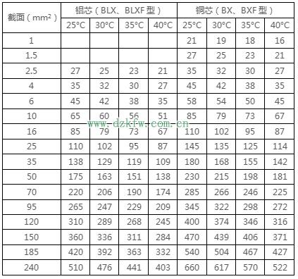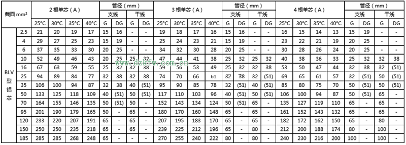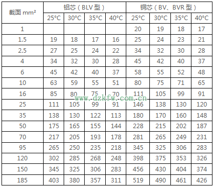 注2:BLV-105型铝芯耐热线的载流量可按表中的数据乘以0.78。