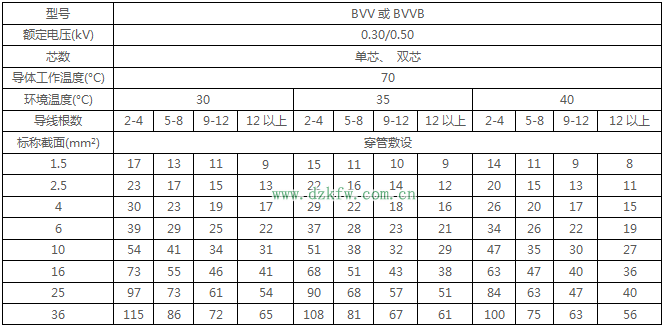 BVV、BVVB绝缘电线穿管暗敷时持续载流量