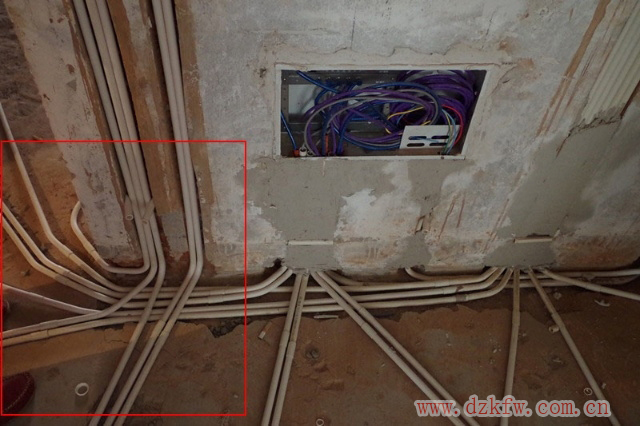 能整不断:一线槽内不允许出现接头,并且最多只能有3根电线(火地零),而且线管最好也是一根整管,不要有太多的接头。因为后期我们的地面水泥砂浆找平乃至于以后的日常生活都有可能洒水到地面上,就会有通过接头渗入线管内的风险。虽然这种风险很小,但是他确实存在。