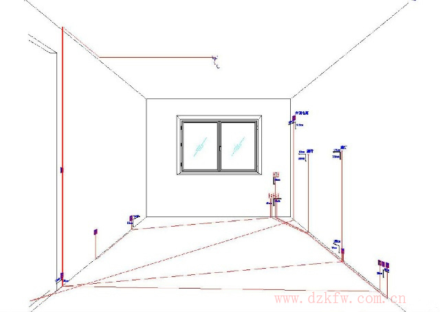 比如我家的客厅与卧室,线路就是从客厅直接穿墙过去,然后再分配到卧室的每一个插座位置。