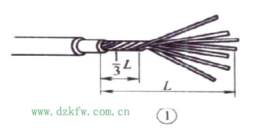 然后把余下的2/3芯线头按图示分散成伞 ,并将每根芯线拉直。