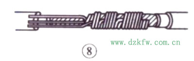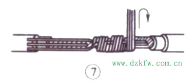 7)把余下的3根芯线按步骤⑤方法缠绕至第2圈时,把前4根芯线在根部分别切断,并钳平;