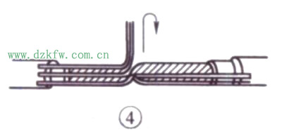 6)接着把处于紧挨平卧前邻近的2根芯线折成90°,并按步骤⑤方法加工。