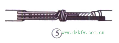 5)接着把这两股芯线按顺时针方向紧缠2圈后,再折回90°并平卧在折起前的轴线位置上。