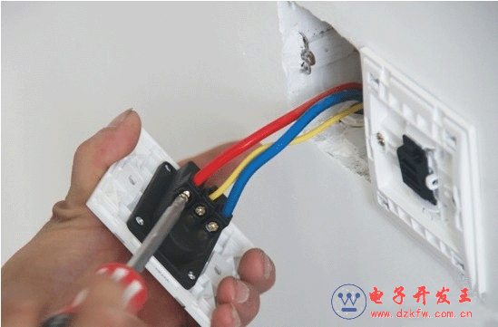 2、用螺丝刀将该插座的盖板取下,然后拧下固定螺丝。