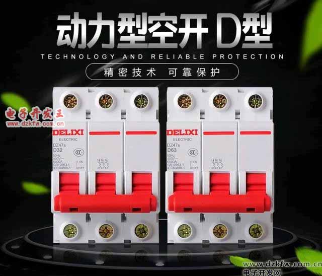 而D型断路器,它的特性要比C型的大很多,一般为10~20倍的额定电流,相比C型的16A,D型的16A在想要它在线路中作为保护,它几乎不动作,所以家庭使用中,一定要看清楚断路器前面的英语字母的代号。也就是说D型系列的断路器一般用于有电动机工作的动力配电中。在配电线路比较高的瞬间接通电流的或者有启动电流比较大的场合,我们的最佳选择非他莫属(D系列断路器)。