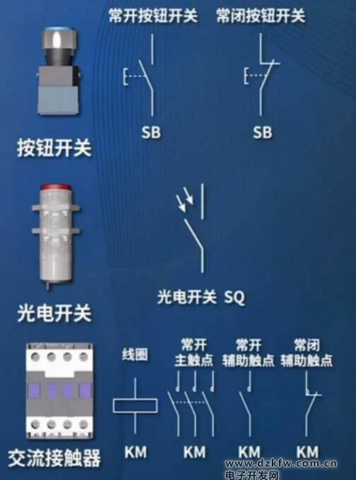 每天涨知识,天天学一点,作为电工初学者,最基本的就是能认识各类电气元件实物和相对应代表的电气符号,就像盖房子样,基础打好,学的就非常快,也很容易。 下面就给大家图列出了常见的几个元件和对应符号,喜欢了大家可以保存收藏学习。