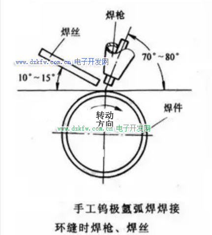 将枪嘴和被焊工件保持在70~80度夹角,焊丝保持160~170度左右夹角,既容易送丝操作,便于眼睛观察熔池变化,也能让氩气保护范围达到极至。