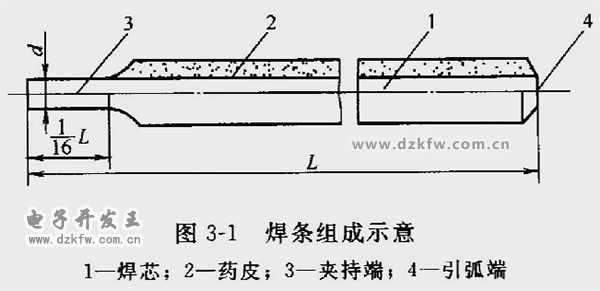 电焊条由焊芯、涂料药皮两部分组成。目前在焊接生产中广泛使用的基本上都是厚药皮焊条。