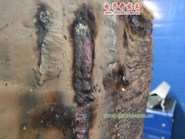 焊接时要注意,不能让药皮超过铁水,否则容易夹渣。