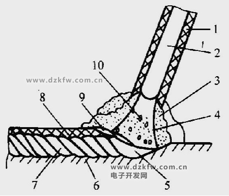 焊芯在电弧热作用下不断熔化,进入熔池,成为焊缝的填充金属。