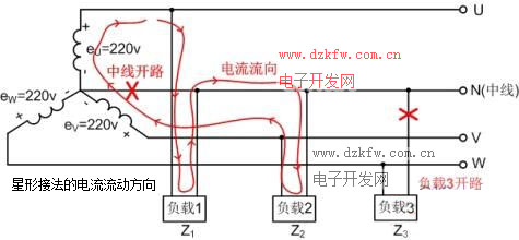 星形连接中:U相=1.732U线 I相=I线 U线=220v
