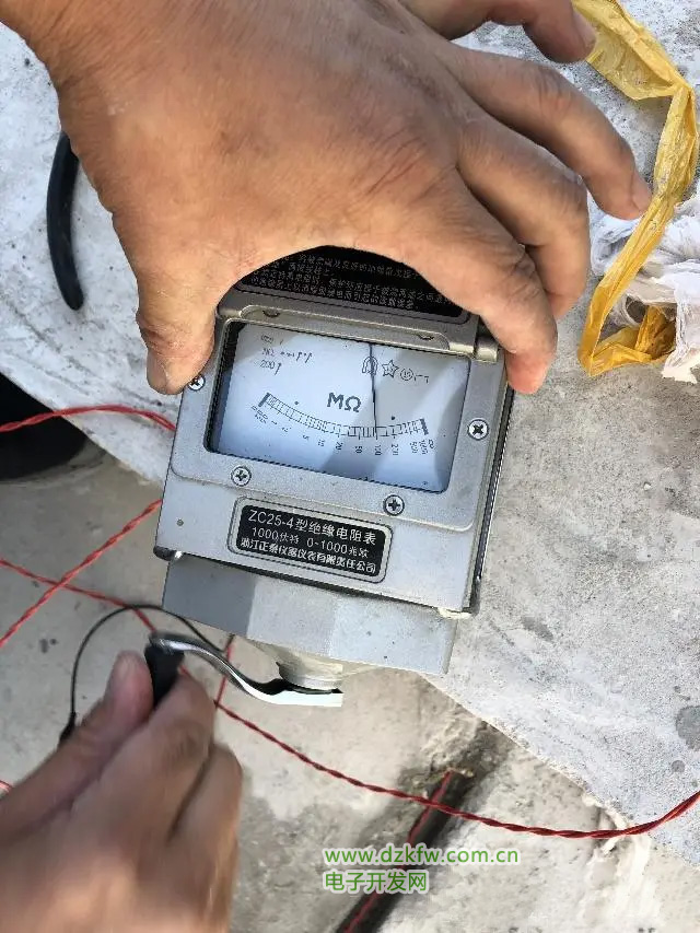 此时我们观察摇表上面的显示的数值:如果摇表摇测出来的数值大于等于0.5兆欧,那么说明我们测量的电线也就是火线是绝缘合格的,不存在接地漏电的问题;如果摇表摇测出来的数值小于0.5兆欧,那么说明我们测量的电线也就是火线是绝缘不合格的,存在接地漏电的问题;