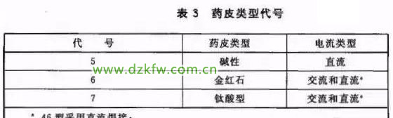 d)第四部分为最后一位数字,表示药皮类型和电流类型,见表3.