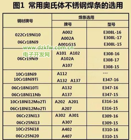 这里再具体叙述一下常见的奥氏体、马氏体和铁素体不锈钢焊条的选用:
