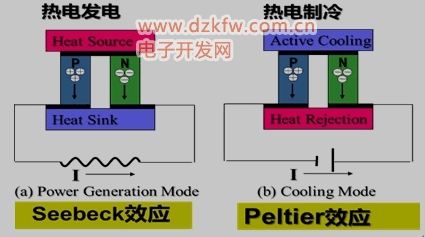 赛贝克效应的原理可以简单解释为:在两种金属组成的回路中,如果两个接触点的温度不同,则在回路中将出现电流,称为热电流。同时在该电势差作用下产生一个反向电荷流,当热运动的电荷流与内部电场达到动态平衡时,半导体两端形成稳定的温差电动势。
