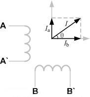 既然电机转子是跟随电机定子磁场转动,而电机定子磁场的强度和方向是由定子合成电流决定且成正比。即只要控制电机的定子电流,则可以达到驱动电机的目的。下图是两相步进电机的电流合成示意图。其中Ia是由A-A`相产生,Ib是由B-B`相产生,它们两个合成后产生的电流I就是电机定子的合成电流,它可以代表电机定子产生磁场的大小和方向。