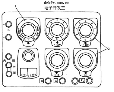 单臂电桥又称惠斯顿电桥,当需要精确地测量中值电阻时,往往采用单臂电桥进行测量。其原理如图1所示。图中Rx为被测电阻,G 为检流计, Rl 、R2 、R3为可调电阻。当满足关系式R1 R3 = R2 Rx 时 , 电路达到平衡。此时检流计中通过的电流为零(指针不动)。我们将R1/R2称为比例臂R3称为比较臂。图2 为QJ23 型直流单臂电桥的面板图。在测量时可根据对被测电阻的粗略估计,选取适当的比较臂的数值乘上比例臂的倍数。