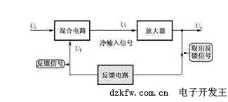 如图1所示是反馈方框图。从图中可以看出,输入信号Ui从输入端加到放大器中进行放大,放大后的输出信号Uo其中的一部分加到下一级放大器中,另有一部分信号经过反馈电路作为反馈信号UF,与输入信号Ui合并,作为净输入信号VI加到放大器中。