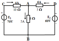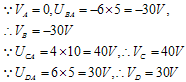 【例】如图所示电路,以B点为参考点,求各点的电位;再以A点为参考点,求各点的电位。