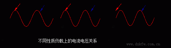 在电子领域的负载有三个基本品种:电阻、电容和电感。电阻是消耗功率的器件,电容和电感是储存功率的器件。日常所用的交流电在纯电阻负载上的电压和电流是同相位的,即相位差q = 0°,如图1(a)所示;交流电在纯电容负载上的电压和电流关系是电流超前电压90°(q =90°),如图1(b)所示;交流电在纯电感负载上的电压和电流关系是电流滞后电压90°(q = -90°),如图1(c)所示。