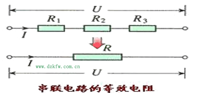 两个或两个以上的电阻按头尾相接的顺序一个接一个地连接起来,使电流中有一条回路,电阻的这种连接方式称为电阻的串联。