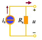 考虑实际电流源有损耗,其电路模型用理想电流源和电阻的并联组合表示,这个电阻称为电流源的内阻。