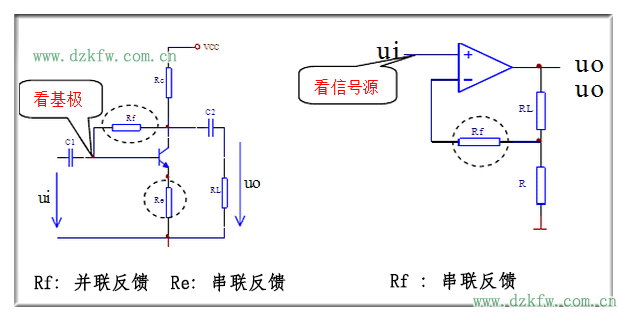 二、“看基极(运放要看信号源端)”确定并联反馈、还是串联反馈