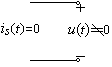 输出电压us(t)=0时,电压源是端电压为零、电流由外电路决定的两端元件,等效电路相当短路线。如图(c)所示。