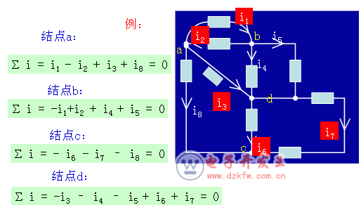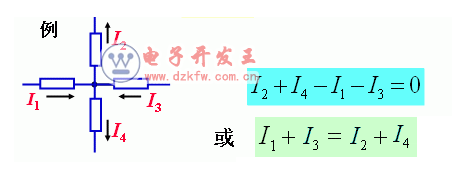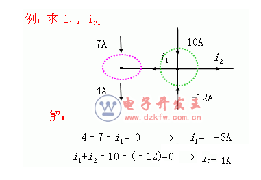 在集总电路中,在任一时刻,流入任一节点的电流等于由该节点流出的电流。或者说,在任一瞬间,一个节点上各支路电流的代数和恒为 0。