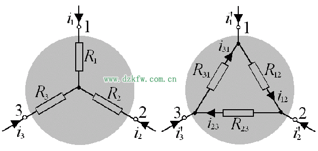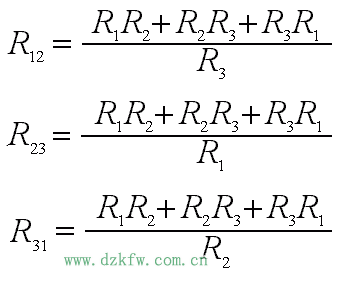 毫无疑问,两个等效电路内部必然有一个对应关系存在。换句话说,对于如图电路,知道其中一个电路中的三个电阻,就可计算出另一个电路中的三个电阻。