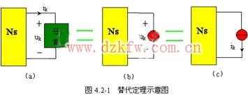 如果已知电路中第 k 条支路的电压 uk 和电流 ik ,那么无论该条支路是由何种元件构成的,它都可以用电压等于 uk 的理想电压源或电流等于 ik 的理想电流源去替代,替代之后,电路中其他支路的电压和电流均不变。