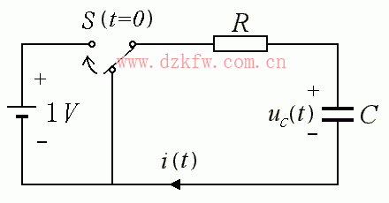 - 图示电路,在 t=0 时开关打向电压源,C 上的电压可表示为: