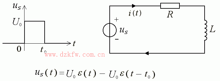 - 如图示,激励源可表示为两个阶跃函数的线性叠加,求 i ( t ) 。