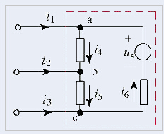 可见,对于图中虚线所示的闭合面,如果把它看作一个结点(广义结点),它也满足KCL定律,和它相连的3条支路的支路电流的代数和为0。