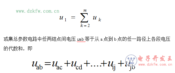 集总参数电路中任一支路电压等于与其处于同一回路(或闭合路径)的其余支路电压的代数和,即