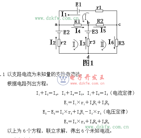 以图1所示电路为例:来说明基尔霍夫定律在几种解题方法上的应用,此电路有4个节点,三个网孔,6条支路。