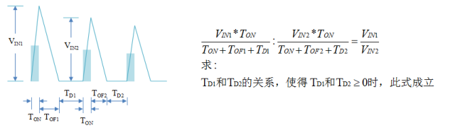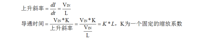 ●这个公式可以看到,电感上的电流直线上升,上升斜率取决于输入电压,而上升的终点同样取决于输入电压,这样就导致导通时间最终和输入电压无关了。