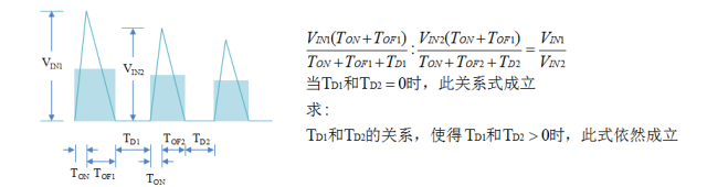 ●如果需要降低输入电流,可以不调整TON ,但是在每个切换周期后面增加等待时间,输入电流降低越多,等待时间越长,在TON不变的情况下,输入电流越低,频率越低。