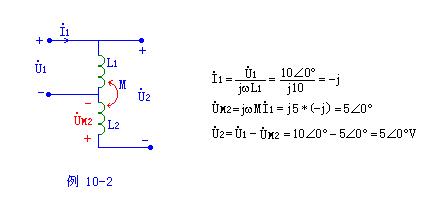 【实例10-2】具有互感的电路如图例10-2,已知ωL1=ωL2=10Ω,ωM=5Ω,