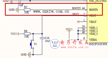 上图中红圈中那个电阻是下拉电阻吗?但是它没和任何东西并联呀,是在引脚和地之间直接串联的?